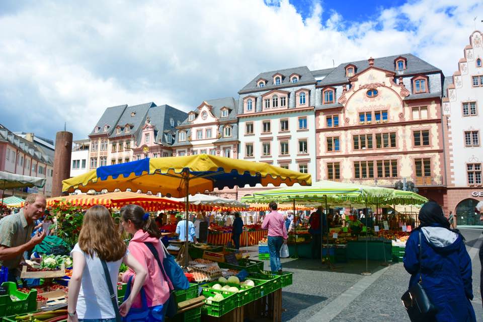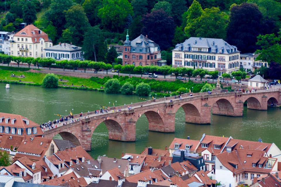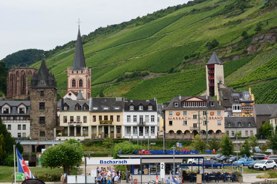 Just now had a chance to post a few pics. Yesterday we were in Mainz, a beautiful city near Frankfurt…highlight there was the 1000 year cathedral located in the old city. In the shadows of this incredible cathedral, there was a street fair with a farmers market and colorful flower stands. It was a lot of fun to just walk through the area and get a feel for the German way of doing things! Then we were up bright and early today for a castles and vineyards cruise down the Rhine River…definitely one of the most relaxing things we’ve done in a while. After that, we moved on to Heidelberg and logged many miles on our tired feet trying to take everything in as we go on to Switzerland first thing tomorrow. Heidelberg Castle and the old city were just a few of the must sees here. So far, so good…